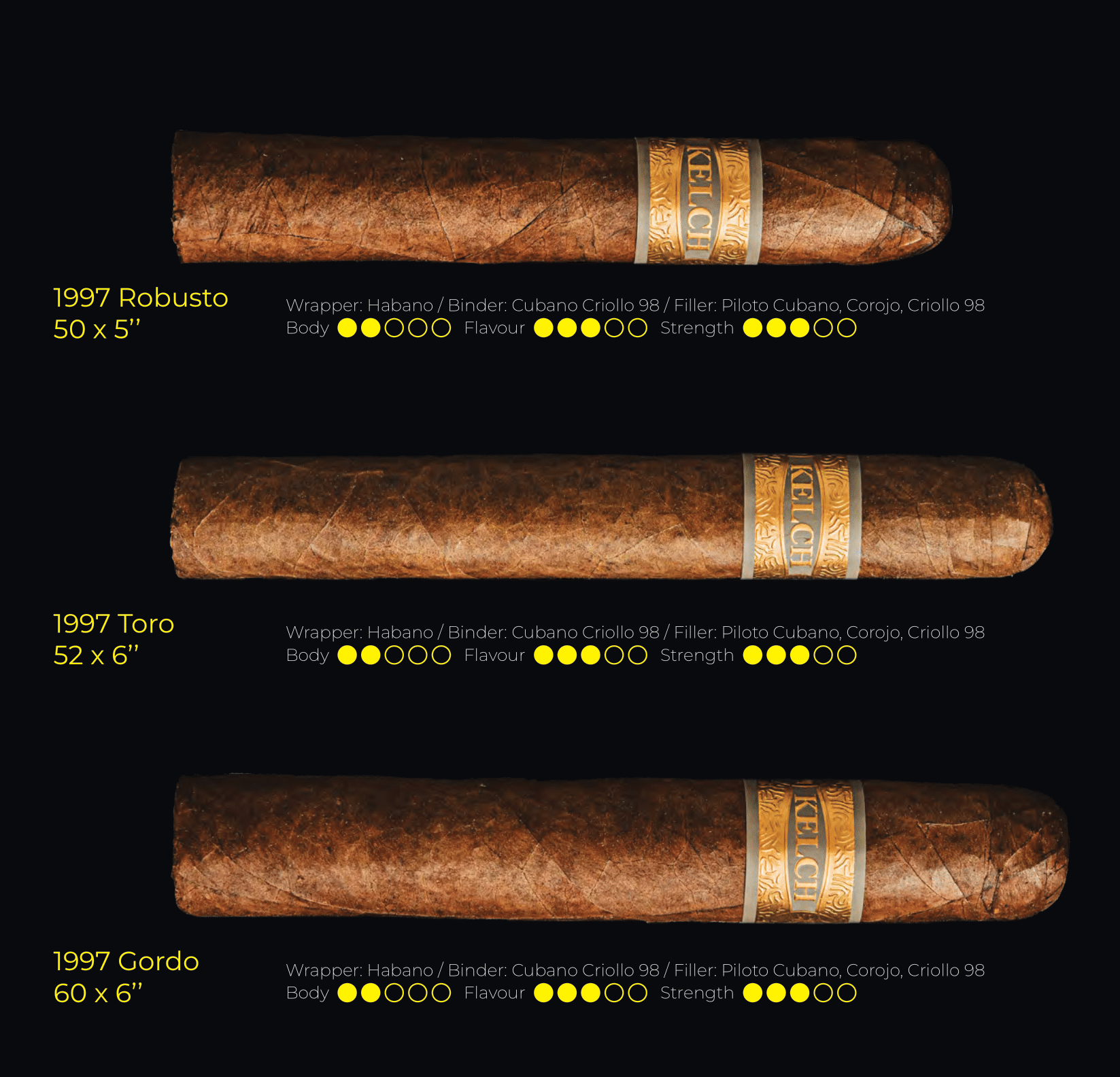 The Kelch 1997 is a medium-heavy cigar and with slightly spicy edge.